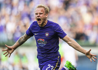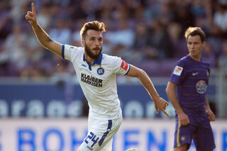 Aues Sören Bertram jubelt nach seinem Tor zum 1:0.
