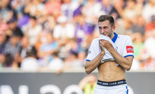 Karlsruhes Jonas Föhrenbach ist nach dem Gegentor geschockt.