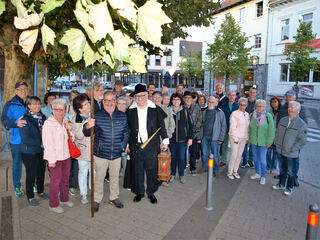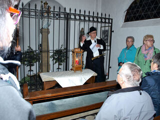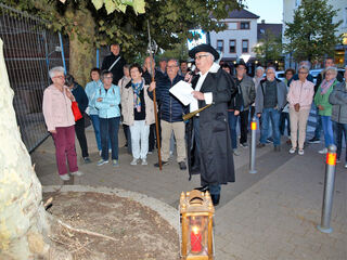 Etwa 30 Bürger haben sich dem Nachtwächter angeschlossen, um mehr über ihre Gemeinde zu erfahren.