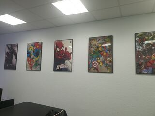 Viele Comichelden wie Spiderman oder die Avengers hängen an der Wand.