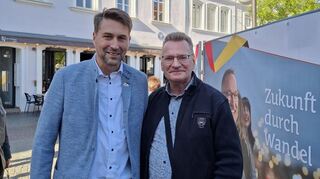 Bild: Termin vor Ort: Autor Konstantin Groß (r.) im Gespräch mit Saarbrückens Oberbürgermeister we Conradt.