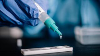 Beim Schnelltest wird mit einem Stäbchen eine Probe aus dem Rachen oder aus der Nase entnommen. Das ist unangenehm, aber nicht gefährlich. Für Kinder gibt es auch Tests zum Lutschen („Lolli-Test“). Mit einer Flüssigkeit wird dann die Probe auf einen Teststreifen gegeben. Dieser reagiert auf bestimmte Teile des Virus („Proteine“) und verfärbt sich, wenn man „positiv“ ist, also infiziert.