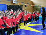 Schon von weitem waren die bunten Clownsfiguren-Aufsteller vor der Jahnhalle zu sehen, in der die Aufführungen stattfinden sollten, während fleißige Eltern- und Schülerhände alles für das gemütliche Beisammensein mit frisch gebackenen Waffeln, kühlen und warmen Getränken und frischem Popcorn vorbereiteten. Um 16 Uhr kam die erste Gruppe aus der 1a bis zur 4a zum Zuge, beginnend mit einem großen Chor unter der Leitung von Lehrerin Anne Kathrin Bade. Hoch engagiert und melodisch sangen die Kinder mit viel Elan, bevor es allerlei Kunststücke zu sehen gab, die von peppiger Musik begleitet wurden.