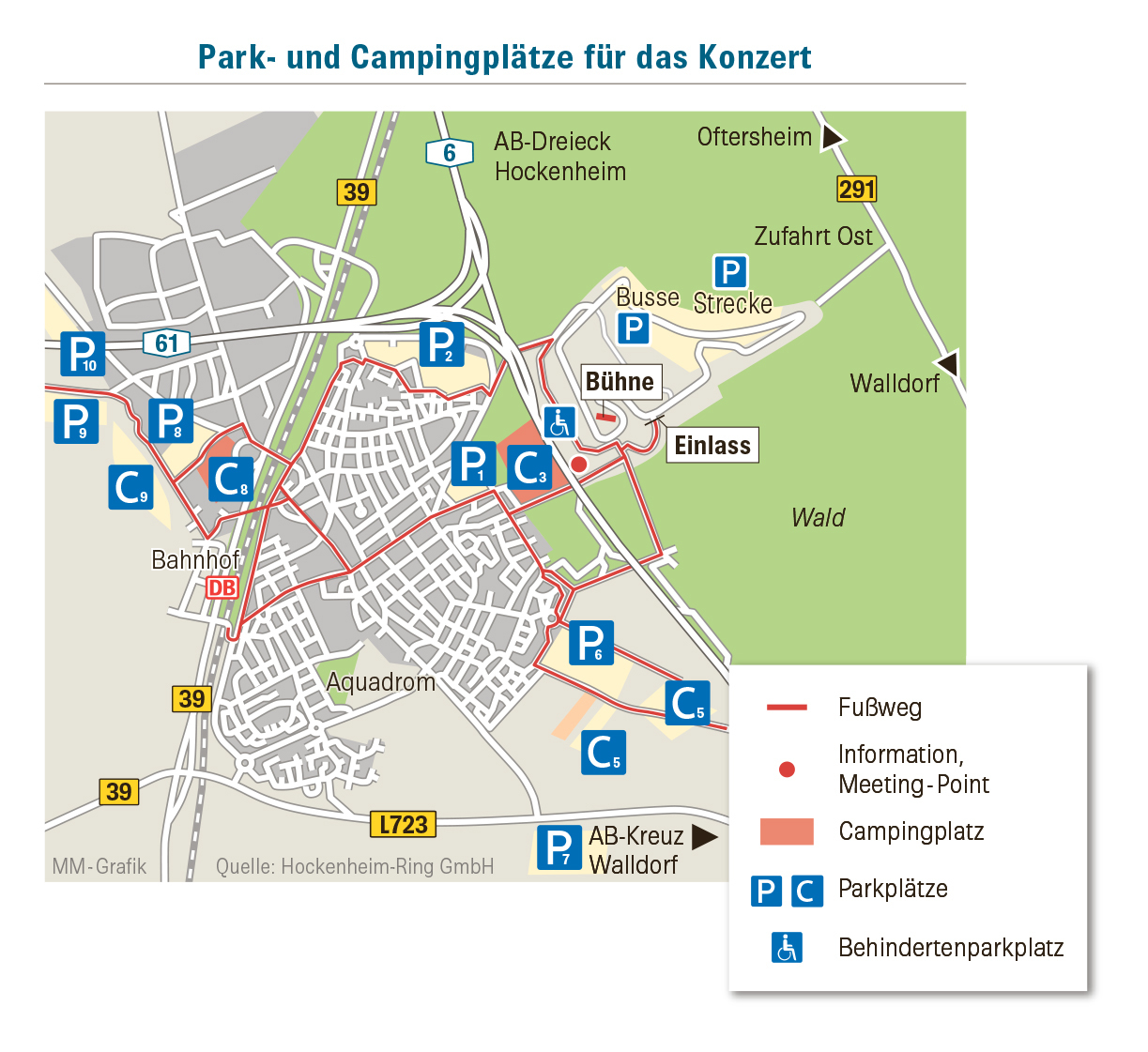 Der Onlineverkauf der Tickets unter Angabe von E-Mail-Adressen ermögliche diese direkte Ansprache, sodass allen Konzertbesuchern vorab klargemacht werden könne, was sie mit einer späten Anreise riskieren. Eine kurze, aber wichtige Regel, um Komplikationen zu vermeiden, laute: „Navi aus!“ Sobald die Besucher die Umgebung Hockenheims erreicht haben, sollten sie sich ausschließlich auf die Anzeigetafeln und die Anweisungen der Kräfte vor Ort verlassen. Marcus Zeitler formuliert es so: „Wer nach Navi fährt, landet in der Sackgasse.“