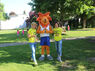 Auch Katja Kruse und Melanie Weber sportelten fleißig und voller Freude mit und wurden beim Vormachen, wie es geht, lautstark von den Kindern angefeuert. Dabei kamen sie bei den hochsommerlichen Temperaturen vermutlich aber nicht halb so sehr ins Schwitzen wie das sympathische Vereinsmaskottchen „Schorsch“, alias Jan Neugebauer, unter seinem dicken Löwenfell. Ungeachtet dessen vollführte „Schorsch“ tapfer zahlreiche gymnastische Übungen.