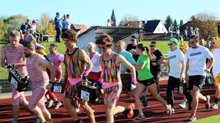 Vor allem die Kostüme dürften bei dem einen oder anderen für echte Erschwernis gesorgt haben. Das Paar, das als Micky und Minnie Maus verkleidet war, dürfte jedenfalls mehr als die 3,96 Liter Flüssigkeit (entspricht zwölf Mal 0,33 Liter) verloren haben. Als Glücksfall darf die Wahl der Strecke gelten. Nicht wie sonst ins Gelände, entschieden sich die Verantwortlichen für einen Lauf komplett auf dem Gelände der TSG-Eintracht. Dabei scheinen die Zuschauer ähnlich viel Spaß wie die Läufer gehabt zu haben. Es ist sicher nicht der anspruchsvollste Lauf. Aber, so der Iron-Man-Hawaii-Finisher Hilberath, "es ist der lustigste Lauf überhaupt".