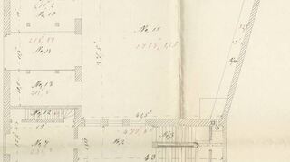 Dyckerhoffs Plan des Rathaus- und Gefängnisneubaus sah einen zweistöckigen Baukörper gegen die Hebelstraße vor, der im Erdgeschoss links des Haupteingangs die Wohnung des Gefängniswärters und rechts des Eingangs die Wachtstube der Gemeinde samt zweier Arrestzellen vorsah. Ein großer Flur mit Treppenhaus schloss sich westlich davon an.