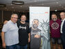 Etliche Gäste kannten den ersten Teil des Films „Hiwwe wie driwwe“ und waren begeistert, wie die Geschichte der Pfälzer in den USA nun in Teil zwei aufbereitet wurde. Bekannte Protagonisten aus der Pfalz wie Comedian Christian „Chako“ Habekost („Pälzer bringen Spaß ins Lebbe“) sowie Karikaturist Steffen Boiselle kamen zu Wort. Letzter machte im Film deutlich, warum die bekannte Pfälzer Geselligkeit generationenübergreifend zunehmend an Bedeutung gewinnt: „Je mehr Internationalisierung greift, desto mehr gewinnen Nischen an Bedeutung.“ Regisseur Benjamin Wagener schafft in seiner kurzweiligen Dokumentation wunderbar den Spagat zwischen Historie, Impulsen zum Nachdenken und Humoresken. Monji El Beji tut in Persona sein Übriges dazu: Der Musiker mit pfälzisch-tunesischen Wurzeln begab sich nach Pennsylvania, USA, um dort „Pennsylvania Dutch“ zu treffen, also Menschen, die eine Sprache sprechen, die deutliche Bezüge zum Pfälzischen aufweist. Und El Beji, der Englisch nach eigenen Aussagen verhalten beherrscht („It’s not the yellow from the egg“ – das ist nicht das Gelbe vom Ei) schlug sich hervorragend durch. Klar war er mit dem Klapprad – einem Sexsymbol für Pfälzer – in Übersee unterwegs. Allein diese Szenen amüsieren.