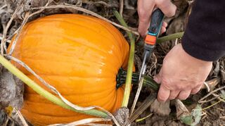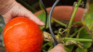7. Bei der Ernte auf die Kürbisfarbe achten