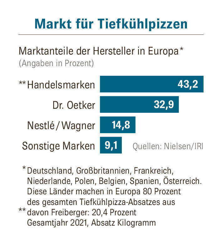 - Heute ist Freiberger nach eigenen Angaben der europaweit größte Hersteller tiefgekühlter Pizzen für Handelsmarken. Es existieren mehr als 1400 Rezepturen.